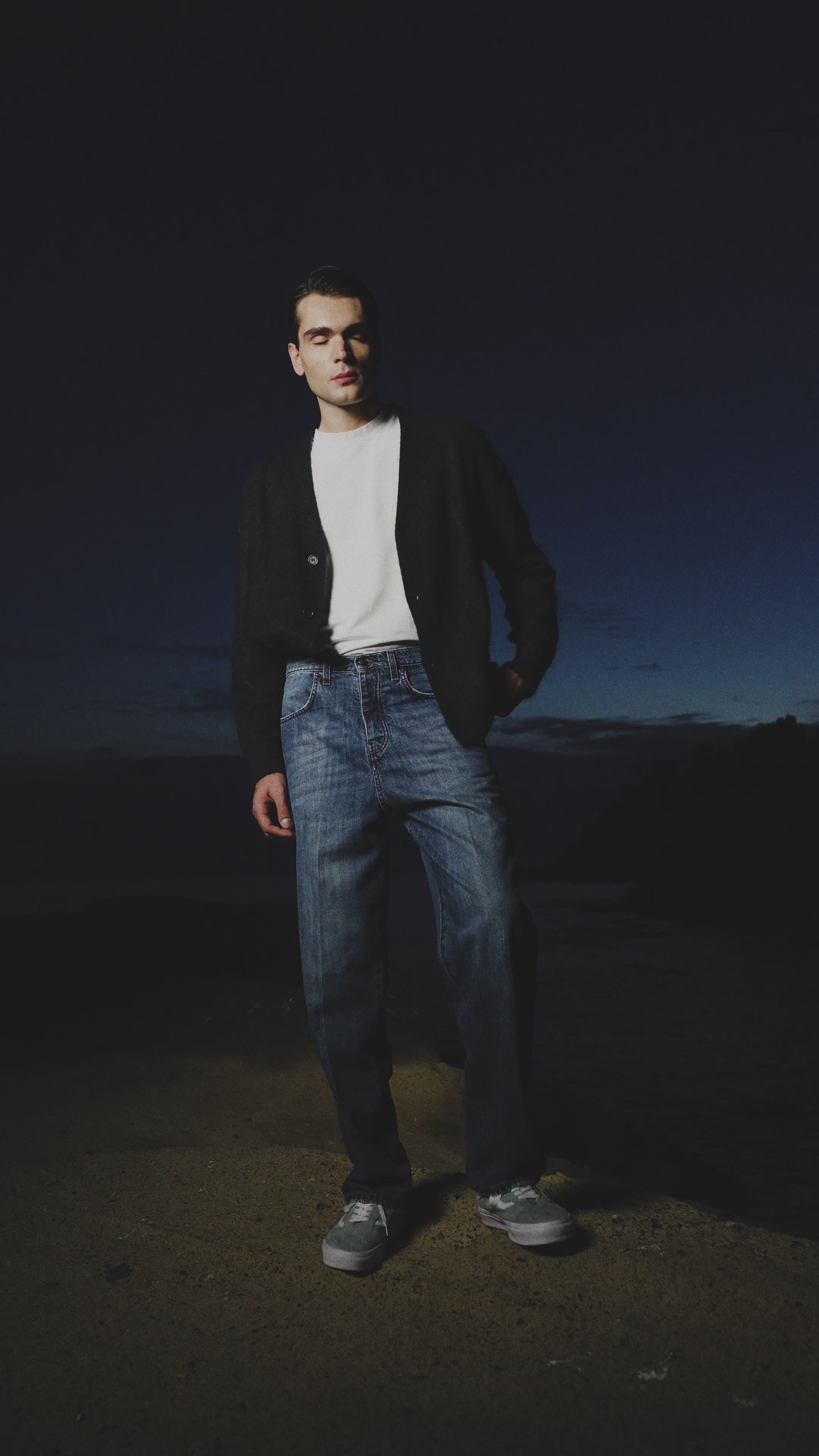 Il modello indossa la taglia 33 ed è alto 186 cm.