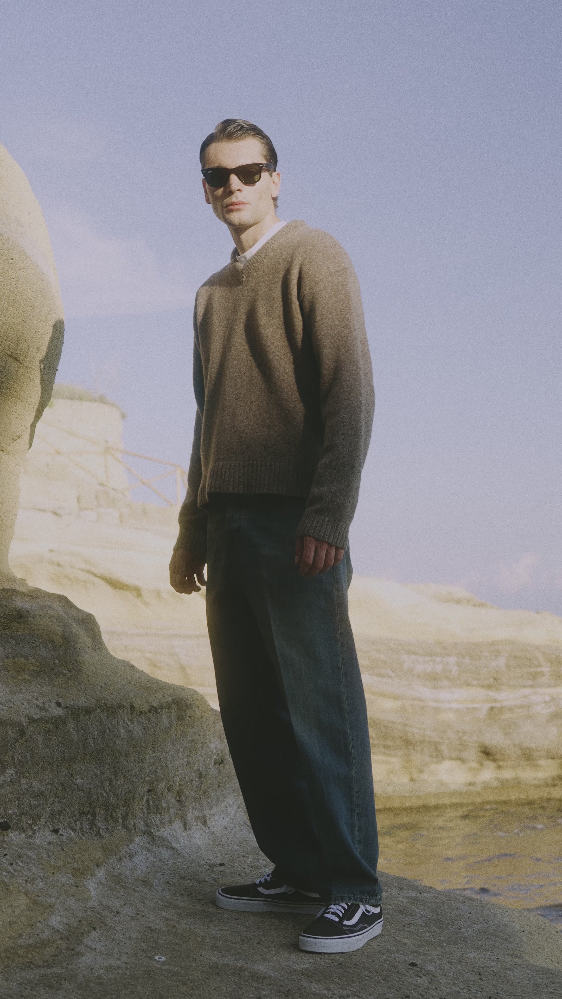Il modello indossa la taglia 33 ed è alto 186 cm.